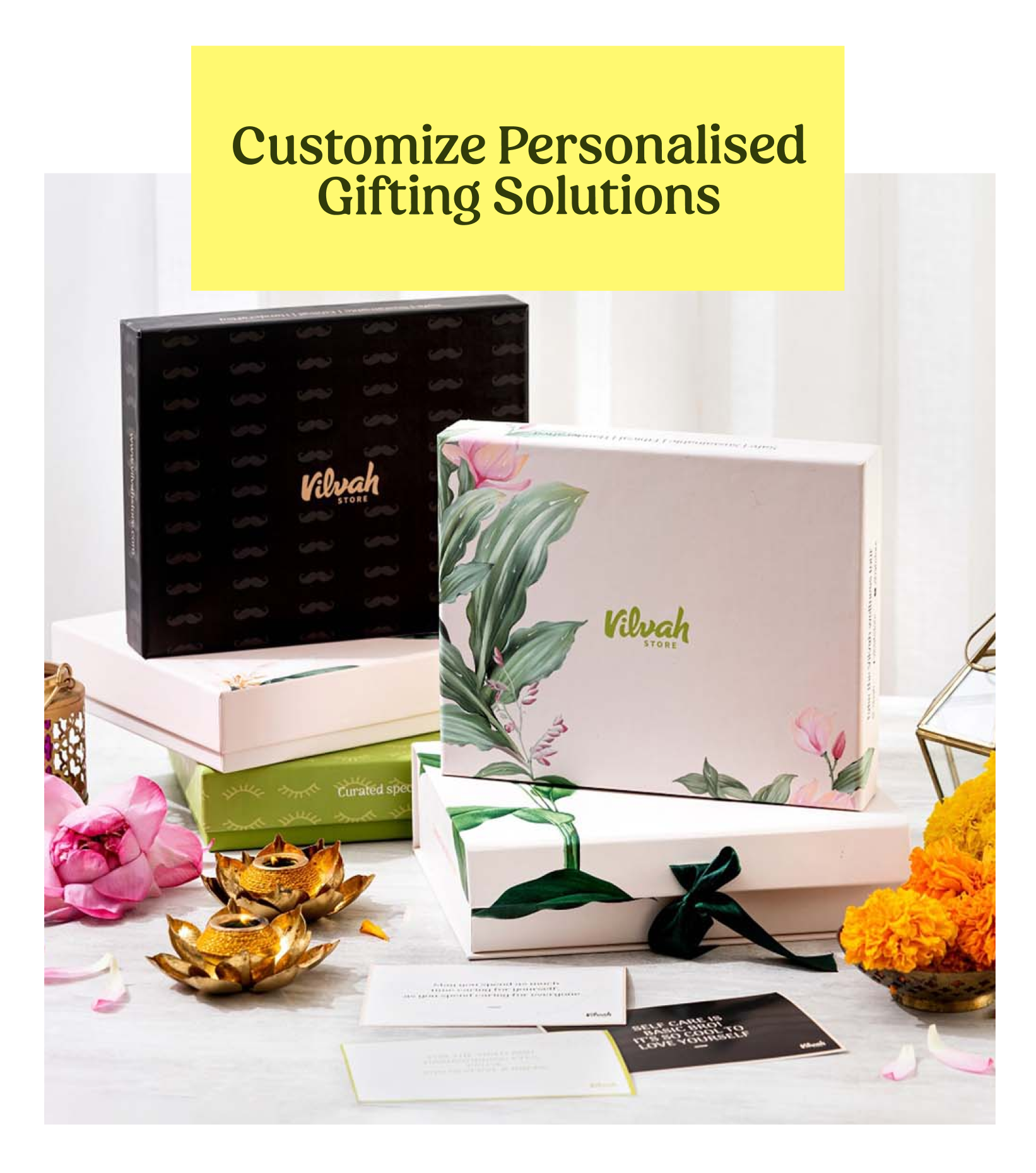 We offer seamless solutions for your corporate & Bulk gifting needs, from selecting the ideal skincare products to ensuring timely delivery. Our eco friendly products are thoughtfully hand wrapped and presented in beautifully designed gift boxes inspired by the beauty and essence of nature, providing a unique and memorable gifting experience.