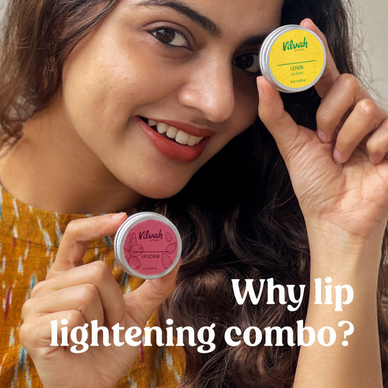 This combo comes with Lip Scrub and Lemon Lip Balm which helps combat lip pigmentation and uneven lip colour. The scrub helps to exfoliate the lips and lightens it and the lemon lip balm reduces pigmentation and provides hydration for soft and supple lips.
